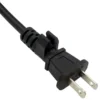 A flat angle AC power cable with a NEMA 1-15P plug, also known as a two-prong plug with a flat profile, is commonly used in North America to power various devices.