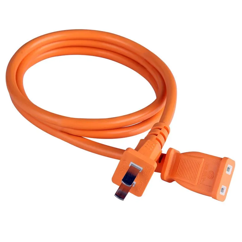 This extension cord is designed for use in China and follows the GB 2099 standard for plugs and sockets. It features a 2-wire, non-grounded plug and a single outlet on the other end.